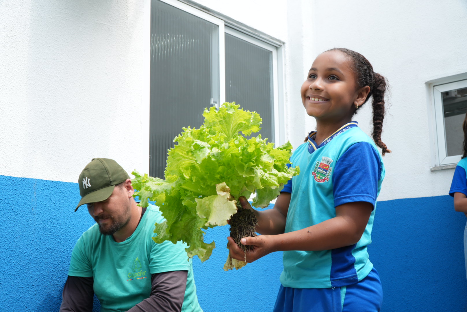 Na manhã desta terça-feira (14), em uma parceria entre as secretarias municipais de Agricultura e Pesca e de Educação da Prefeitura de São Gonçalo, alunos da Escola Municipal Célia Pereira da Rosa, em Santa Izabel, realizaram a colheita de cerca de 100 pés de alface cultivados na horta da Unidade de Saúde da Família (USF) Gladys Rodrigues. Além disso, estudantes da Escola Municipal Marcus Vinicius de Moraes colheram verduras semeadas na própria escola.