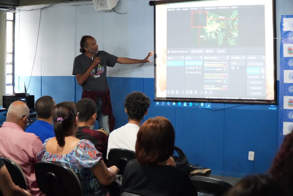 “Eles conseguem montar um mini estúdio caseiro e usar esse conhecimento também no trabalho, abrir um novo horizonte. Nessa oficina de hoje estamos mostrando o básico, que é entrar no programa, adicionar as câmeras, os microfones, fazer o conteúdo e apresentar”, afirmou o palestrante Carlos Eduardo Ferreira (Duda).