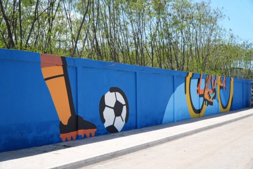 Entre os destaques está um grande painel com representações de atividades esportivas como skate, futebol, basquete e vôlei de praia, localizado na divisa com o muro da concessionária Águas do Rio. O espaço também recebe uma frase do ator, escritor e diretor Lázaro Ramos, em homenagem a São Gonçalo. Próximo à escadaria da entrada principal, está o painel com os personagens “A Família Gonçalense”, que reforça a conexão afetiva com o público.