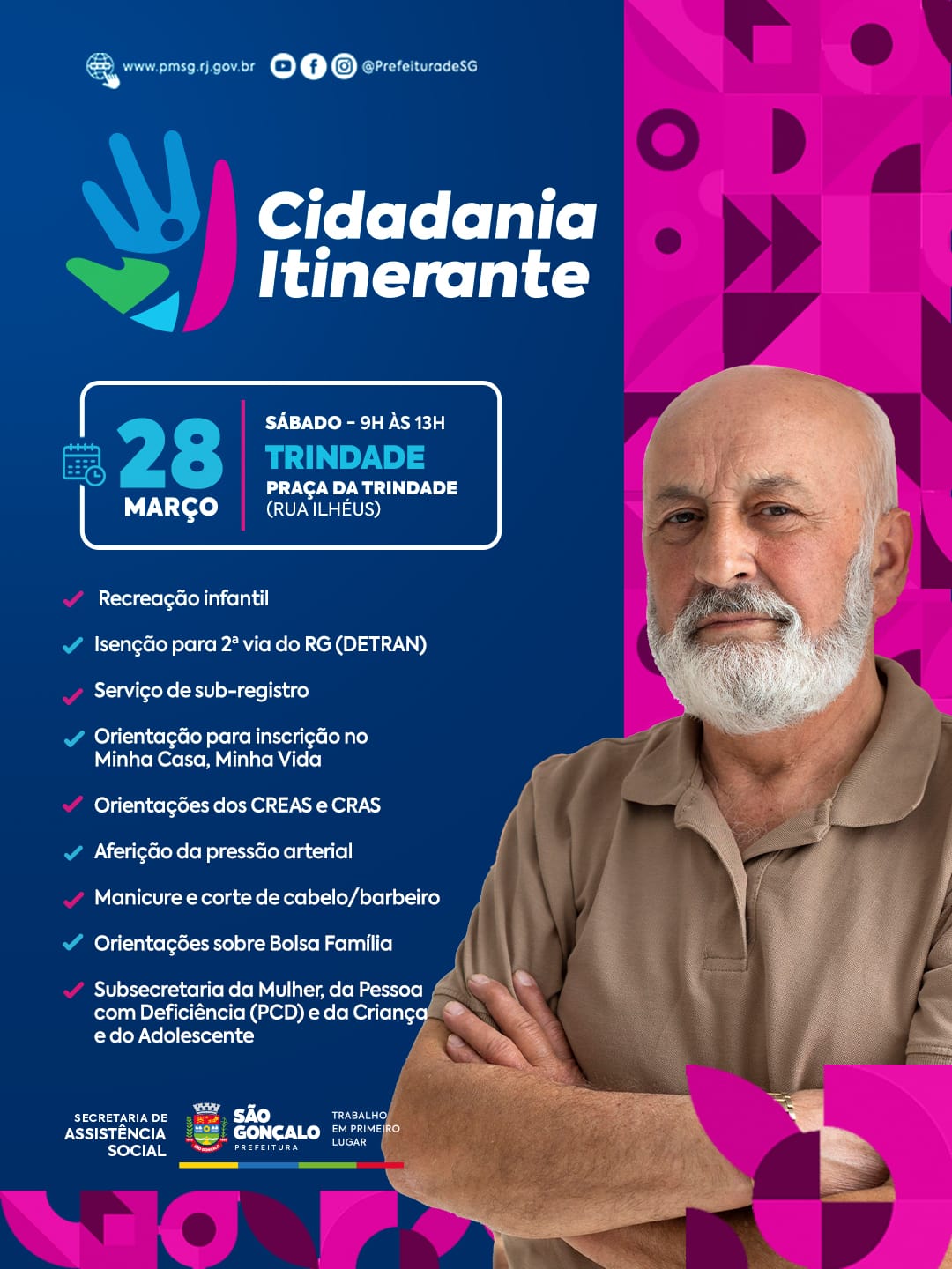 Criado com o objetivo de levar serviços de assistência para os moradores das áreas mais vulneráveis de São Gonçalo de forma gratuita e acessível, o Cidadania Itinerante já atendeu a mais de 40 mil pessoas durante as ações realizadas em 37 bairros.