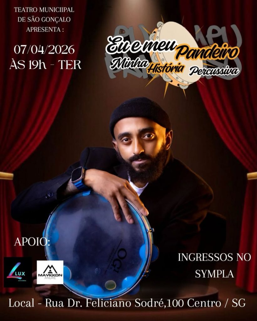 7/4: “Eu e Meu Pandeiro Minha História Percussiva” conta a história do músico Wellington Clayton Conceição Miguel, mas conhecido como ator e músico percussionista Miguel Pretinho. Durante a apresentação, além de tocar diversos instrumentos de percussão, o artista cantará algumas canções da música popular brasileira, e receberá grandes artistas da cidade de São Gonçalo e de outras cidades também.