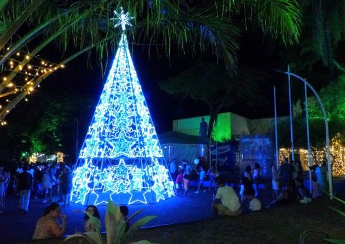 Em uma contagem regressiva junto ao prefeito Capitão Nelson, as luzes da decoração foram acesas encantando o público com a árvore de Natal, pisca-piscas e outros enfeites.