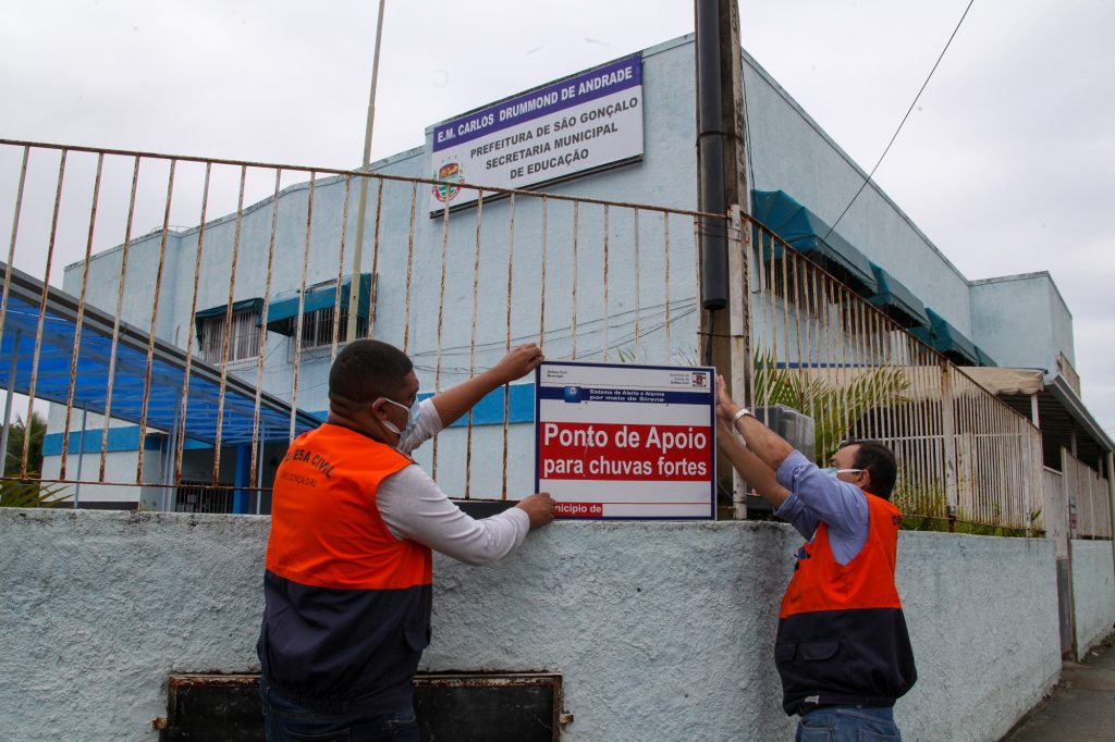 A Subsecretaria de Defesa Civil de São Gonçalo atualizou os pontos de apoio que atendem às 25 sirenes do sistema de alerta e alarme no município. Os locais estão identificados por uma placa com a informação “Ponto de Apoio para chuvas Fortes”. Os pontos de apoio são locais seguros sinalizados pela Defesa Civil, para onde os moradores de áreas de risco a desastres devem se dirigir em caso de chuvas fortes e acionamentos das sirenes.