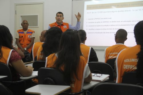 Agentes da Defesa Civil de São Gonçalo realizaram, nesta segunda-feira (6), a aula inaugural da 11ª turma do Curso de Voluntários, nas dependências da Uniasselvi, no Partage Shopping. Com ensinamentos práticos e teóricos, o curso ensina sobre noções básicas da Defesa Civil, com temas como voluntariado, fatores de riscos biológicos, primeiros socorros, noções de climatologia e de evacuação e escape, dentre outros temas.