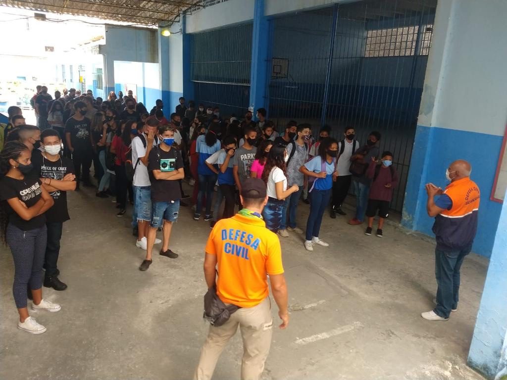 Cerca de 200 alunos do Ensino Fundamental foram orientados sobre os procedimentos corretos para a evacuação da unidade escolar em caso de eventos adversos e outras emergências. A atividade foi desenvolvida pela Coordenadoria de Gestão de Risco de Desastre, contando com o apoio da Coordenadoria Operacional.