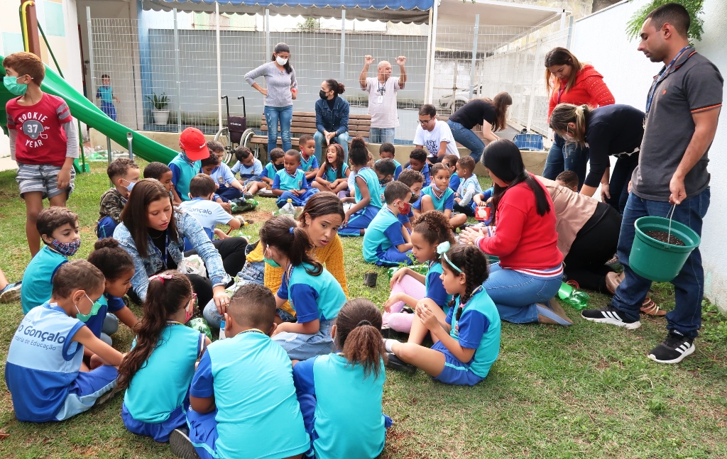 Unindo ações de preservação do meio ambiente e alimentação saudável, a Subsecretaria de Alimentação Escolar da Secretaria de Educação de São Gonçalo promoveu, nesta quarta-feira (15), uma atividade diferente com os alunos da Umei Ednea Mascarenhas de Araújo, no bairro Amendoeira. Na ocasião, os alunos aprenderam a plantar alimentos e temperos saudáveis que fazem parte do dia a dia da merenda escolar.