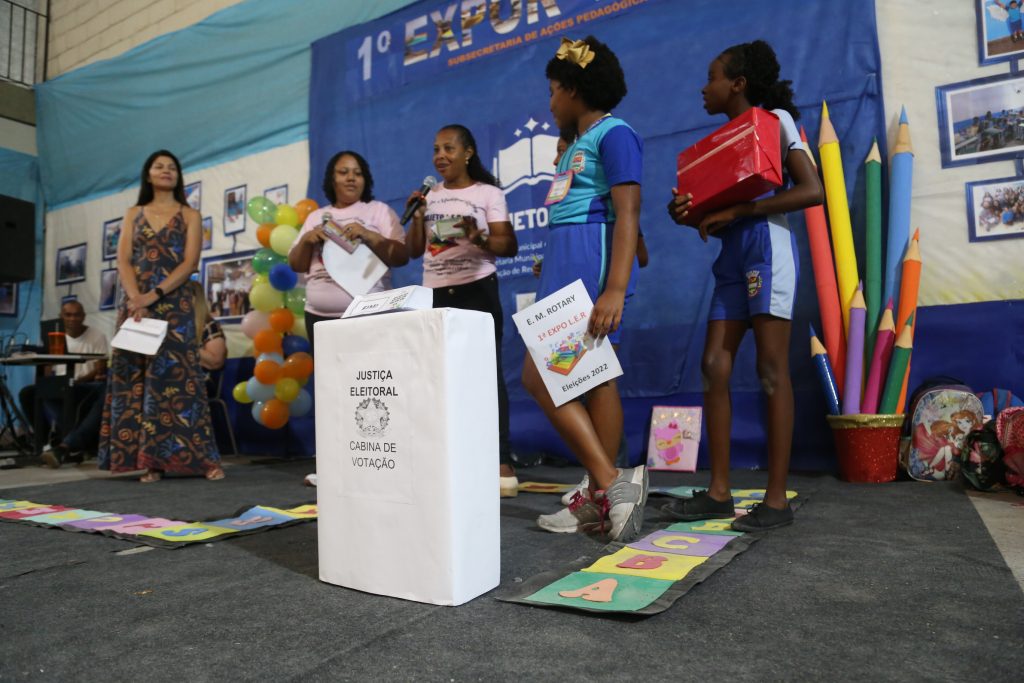 Expondo o trabalho realizado durante o ano, as professoras Gracielle Rosa e Maria Lúcia Moraes, da Escola Municipal Rotary, no Jardim Miriambi, aproveitaram o assunto das Eleições 2022 para ensinar aos alunos como acontece o pleito no Brasil. Em sala de aula, os alunos confeccionaram título de eleitor, urna e até comprovante de votação. Os candidatos da turminha fizeram suas campanhas apontando melhorias a serem feitas na escola.