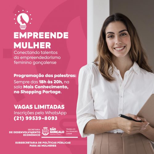 Nesta segunda-feira (11), será iniciada mais uma semana de palestras do projeto “Empreende Mulher”, desenvolvido pela Prefeitura de São Gonçalo, através da Secretaria de Desenvolvimento Econômico, em parceria com a Subsecretaria de Políticas Públicas para as Mulheres.