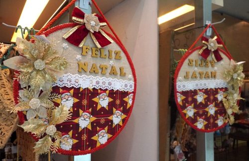 Além das opções de presentes, o espaço ainda possui muitos artigos natalinos, como toalhas de mesa temáticas, guirlandas e presépios artesanais, para utilizar durante a festividade.