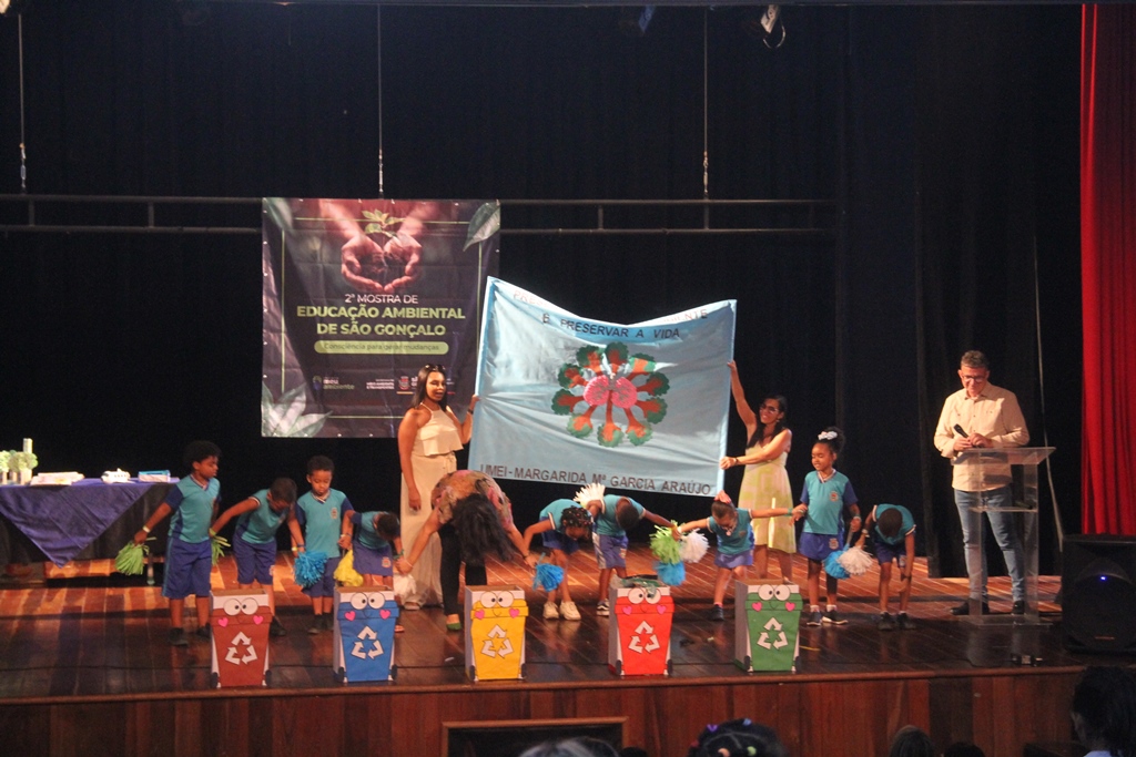 Cerca de 280 alunos da educação infantil e do ensino fundamental I de nove escolas da rede municipal de São Gonçalo, além de pais e professores, participaram da 2ª Mostra de Educação Ambiental de São Gonçalo – Projeto “Meu Ambiente”, realizada no Teatro Municipal de São Gonçalo, no Centro, nesta quarta-feira (1). A iniciativa foi da Secretaria de Meio Ambiente e Transportes da Prefeitura de São Gonçalo, em parceria com a Secretaria de Educação.