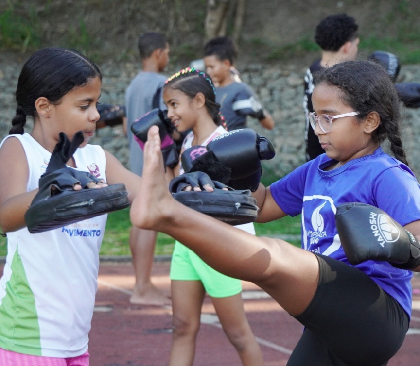 O Projeto Saúde em Movimento garante 18 modalidades esportivas gratuitas para gonçalenses de todas as idades. No Colubandê, cerca de 50 pessoas praticam Muay Thai, a arte marcial tailandesa que combina golpes com os braços e pernas.