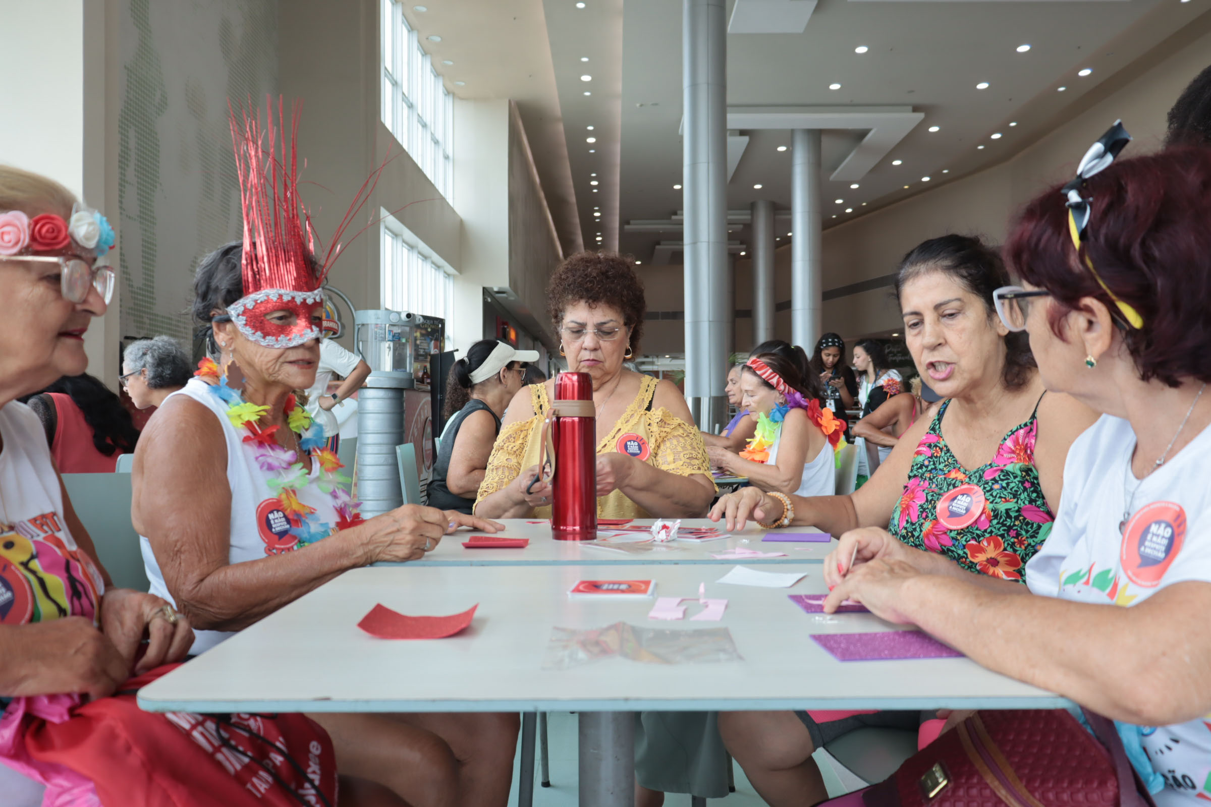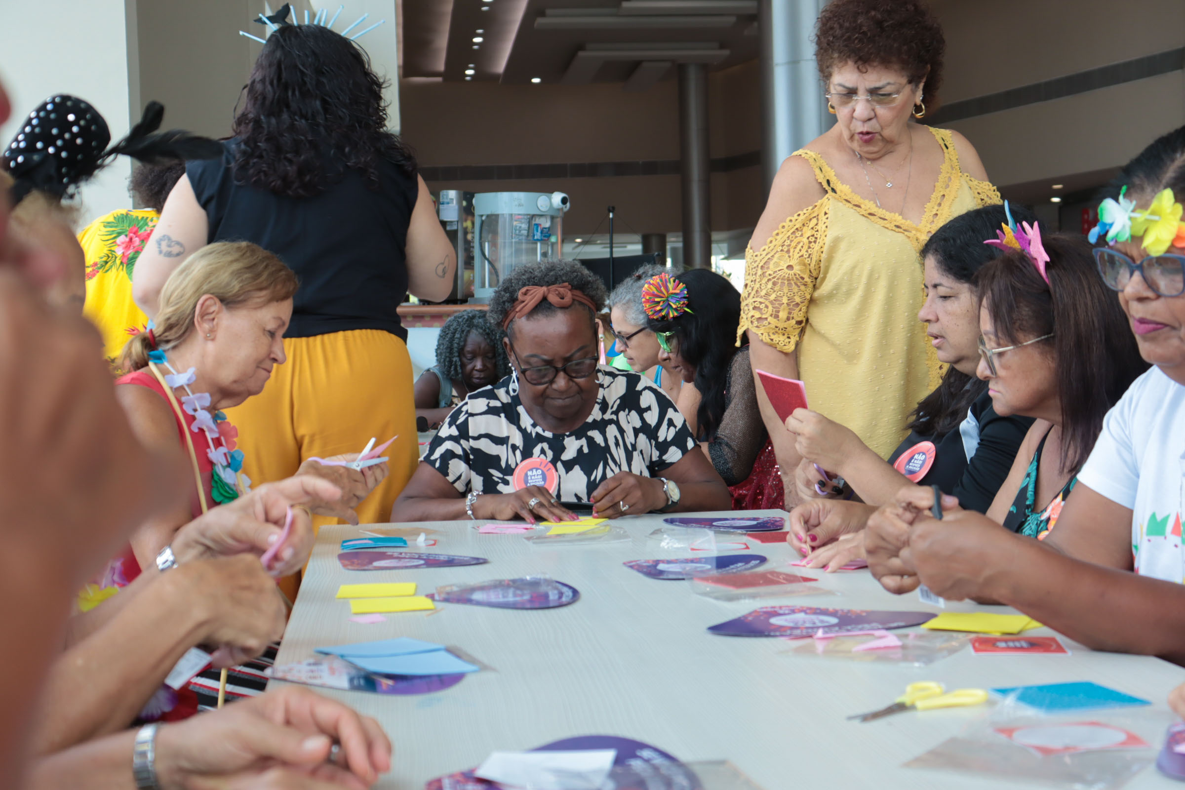 Para brilhar neste Carnaval, as participantes do projeto Mulheres que Fazem e Acontecem realizaram, na manhã desta quinta-feira (5), a oficina Brilhe Mulher, voltada para a confecção de acessórios carnavalescos. A atividade aconteceu no Shopping Pátio Alcântara e foi idealizada pela parceria entre a Secretaria de Assistência Social, por meio da Subsecretaria de Políticas Públicas para as Mulheres, e o shopping.