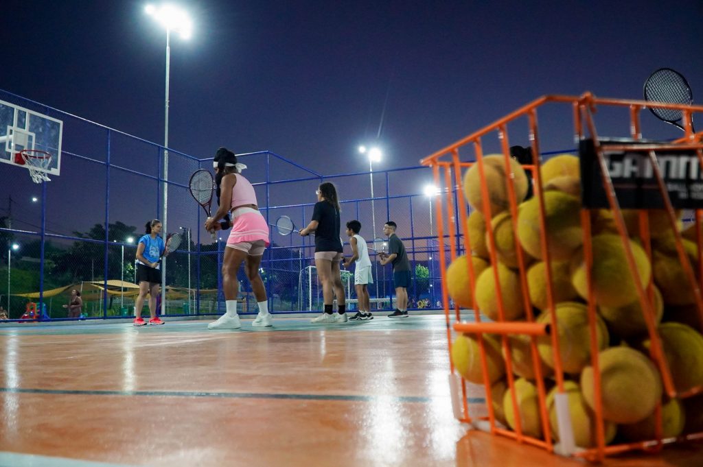 Gonçalenses realizam aulas de tênis gratuitas no Parque RJ Nosso Sonho