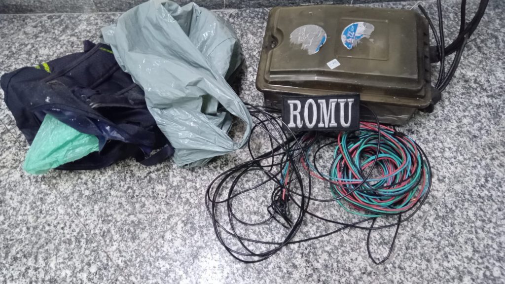 Uma equipe da Guarda estava em patrulhamento quando foi acionada pela CSSG, por volta de 1h, após as câmeras flagrarem suspeitos furtando cabos de energia e um relógio medidor de cima de uma marquise . Imediatamente, a equipe foi ao local e abordou os suspeitos. Com eles, foram encontrados 15 metros de cabos de energia e uma caixa padrão de medidor dentro de uma sacola plástica.