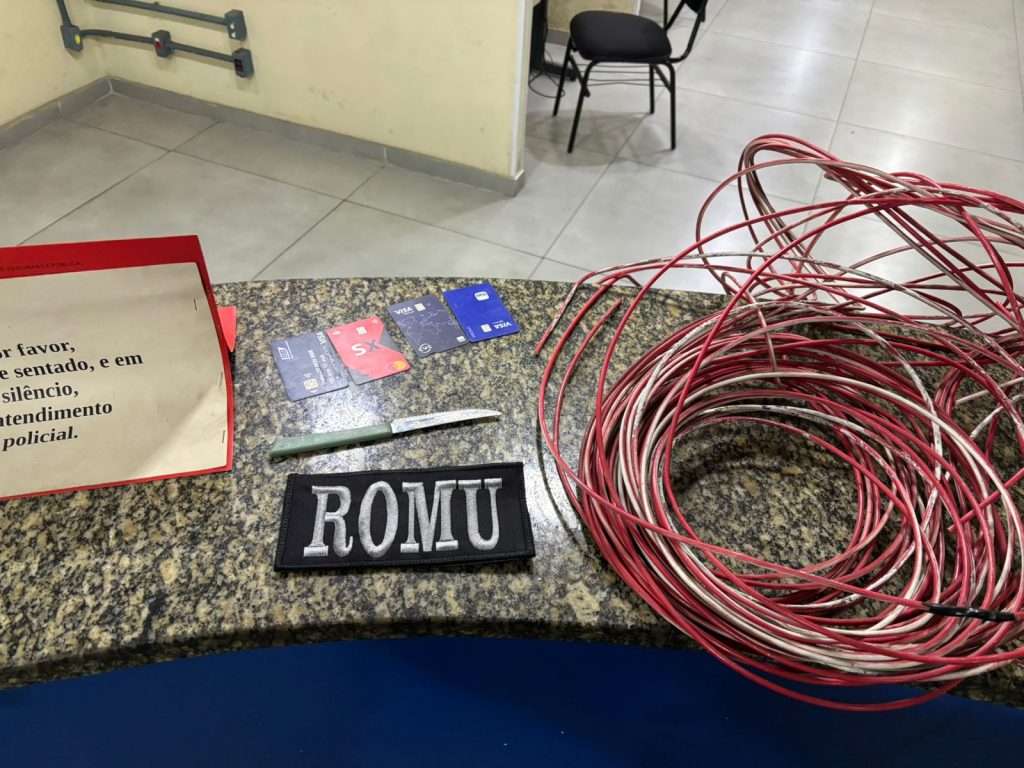 As câmeras da central de monitoramento capturaram imagens do indivíduo pulando o muro para o interior da residência e, em seguida, saindo com os fios. Equipes da Ronda Ostensiva Municipal (ROMU) e agentes da Guarda Municipal foram acionadas e se deslocaram até o local, onde fizeram a apreensão do produto furtado e a condução do suspeito à delegacia.
