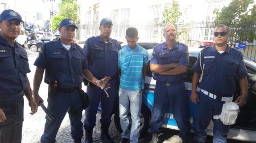 Um homem foi preso em flagrante por roubo, na manhã desta quarta-feira (15/02), pela Guarda Municipal de São Gonçalo (GM), após roubar o celular de uma mulher próximo a Praça Estephânia de Carvalho (Praça Zé Garoto). Depois do assalto, ela se dirigiu à cabine da GM, localizada ao lado da Câmara dos Vereadores, e os agentes realizaram busca nas proximidades. O infrator foi encontrado em um ponto de ônibus na Avenida Presidente Kennedy, perto do Clube Tamoio.