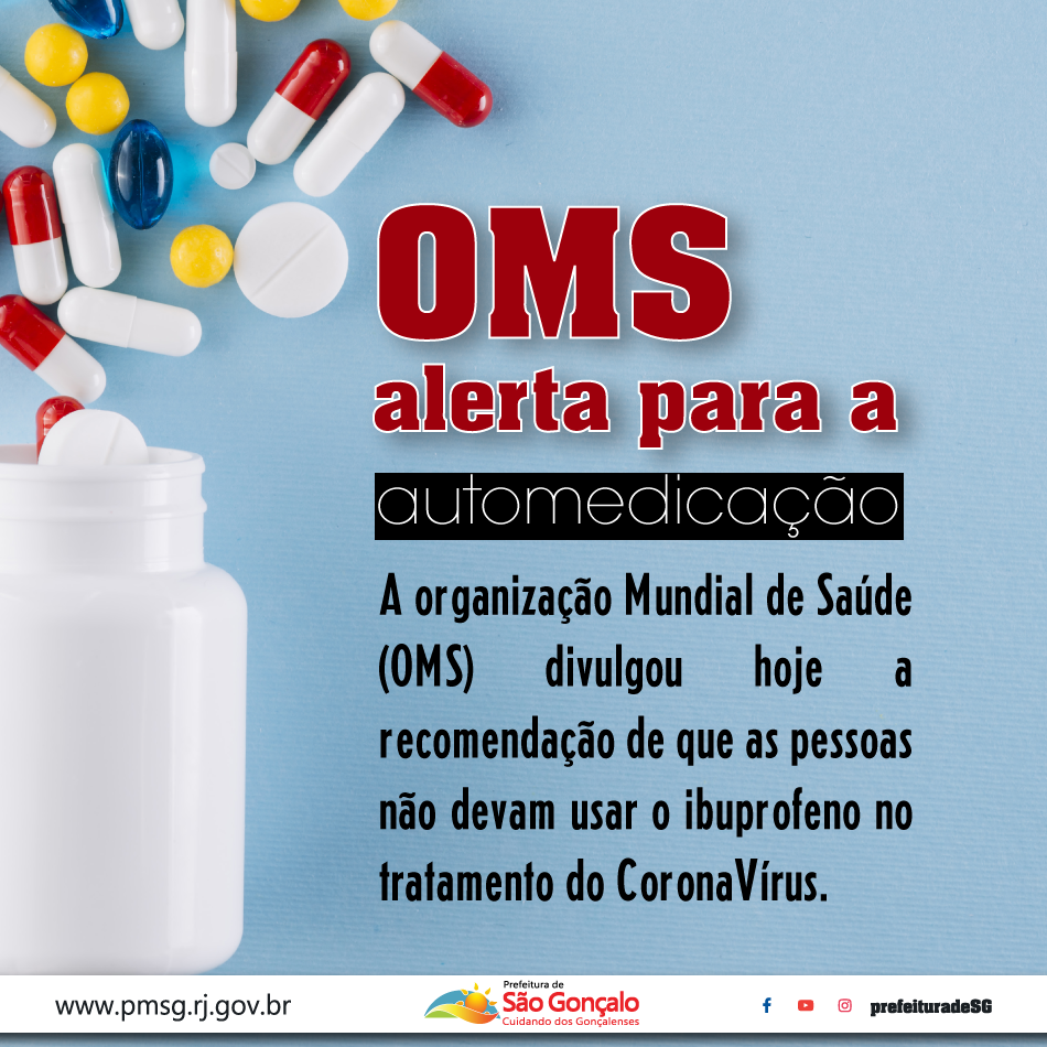 A organização Mundial de Saúde (OMS) divulgou hoje a recomendação para que as pessoas não utilizem o ibuprofeno no tratamento do Coronavírus. As informações foram reforçadas depois de um estudo feito pelo governo francês que uma enzina encontrada no medicamento pode piorar as infecções por vírus. A OMS ainda alertou o mundo contra o risco da automedicação e que em casos do sintoma da doença, o mais indicado é fazer uso do paracetamol.