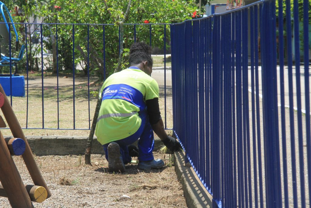 Equipes da Secretaria de Conservação realizam capina, pintura e instalação de novos brinquedos