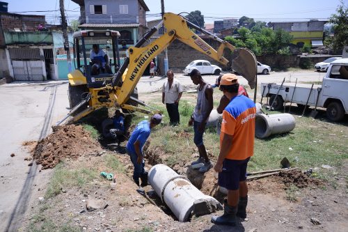 Continuam as intervenções na Estrada do Malafaia. Na manhã desta sexta-feira (13/10), homens trabalharam na recolocação de manilhas na Rua Amazonas Alves, esquina com a Estrada do Malafaia. A limpeza da estrada também continua, com capina, poda e retirada de lixo acumulado.