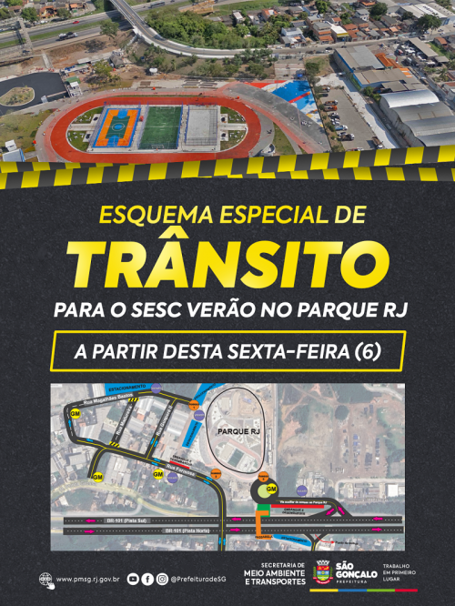A Secretaria de Meio Ambiente e Transportes da Prefeitura de São Gonçalo irá realizar, a partir desta sexta-feira (6), mudanças no trânsito do Boa Vista para a realização do Sesc Verão, no Parque RJ São Gonçalo. As alterações são momentâneas, durando a partir das 12h dos dias do evento, que acontecerá sexta-feira (6), sábado (7) e domingo (8).