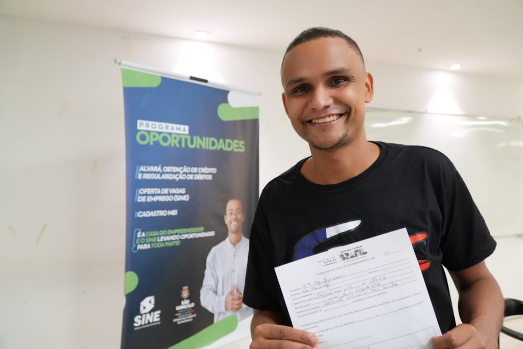Gabriel Oliveira dos Santos, de 29 anos, conseguiu uma carta de encaminhamento para uma vaga de auxiliar de expedição de chão de fábrica, função na qual possui experiência.