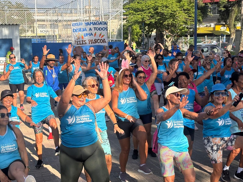 Na manhã desta segunda-feira (30), nove núcleos do projeto Qualidade de Vida e Longevidade se reuniram em um aulão especial de páscoa na Praça da Trindade. O projeto faz parte da Secretaria de Esporte e Lazer da Prefeitura de São Gonçalo.