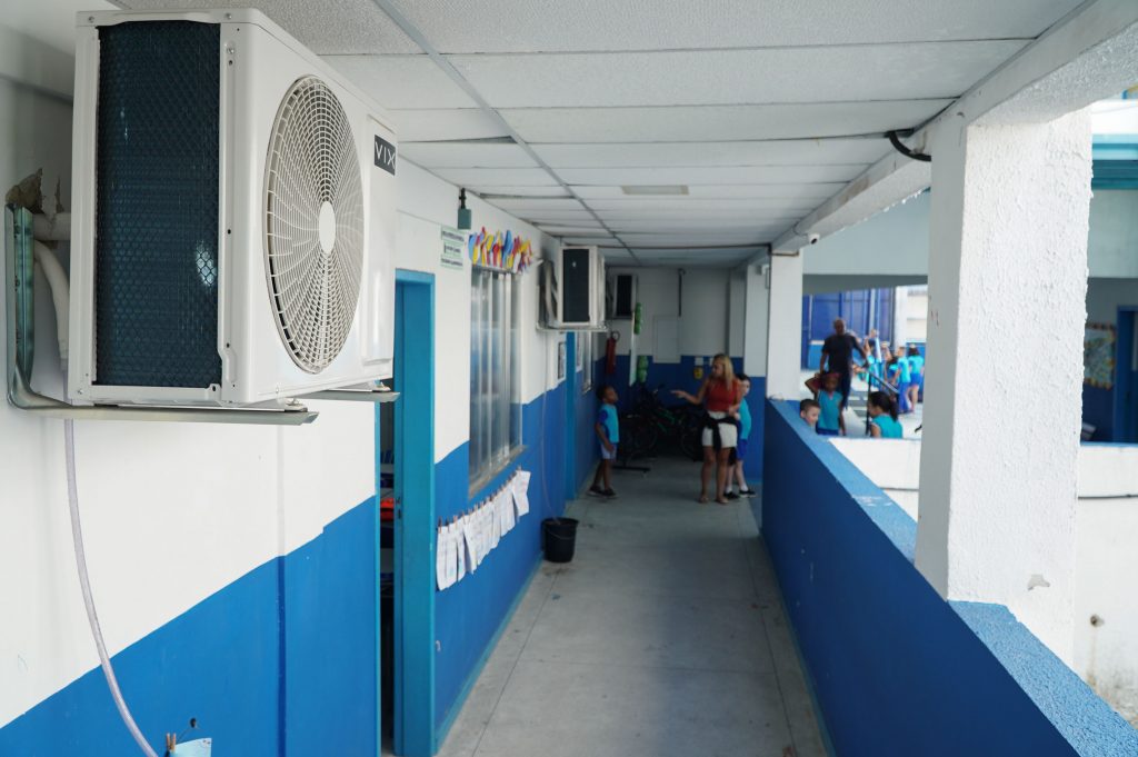 Na Escola Municipal São Miguel, no bairro São Miguel, os alunos já contam com aparelhos de ar condicionado funcionando em suas salas de aula. No final de março, a climatização também foi concluída na Escola Municipal Marcus Vinicius Cruz de Mello Moraes, em Santa Izabel.
