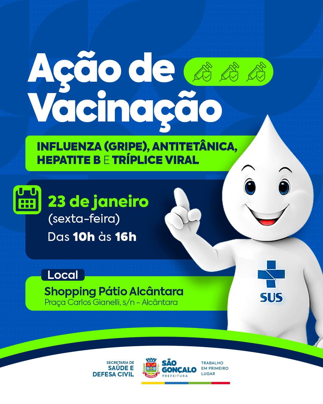 Locais de tratamento – Polos sanitários Paulo Marques Rangel, no Porto do Rosa; Washington Luiz Lopes, no Zé Garoto; Hélio Cruz, em Alcântara; Augusto Sena, em Rio do Ouro; Clínica da Família Dr. Zerbini, no Arsenal; e USFs Armando Leão Ferreira, Morro do Castro; David Capistrano, Itaúna; Mahatma Gandhi, Jardim Califórnia; José Bruno Neto, Boa Vista; Antonina (Cruzeiro do Sul); Água Mineral; Brasilândia; Tancredo Neves, Luiz Caçador; Luiz Carlos Prestes, Santa Catarina; Ana Nery, Gradim; Gladys Rodrigues Ramos Freitas, Santa Isabel; Marechal Cândido Rondon, Colubandê; Adolfo Lutz, Amendoeira; Coelho; Doutel de Andrade, Maria Paula; Marilea Cardoso, Jóquei; Louis Pasteur, Guaxindiba; Aníbal Porto, Monjolos; Agenor José da Silva, Jardim Catarina; Elza Borges, Santa Luzia e Roberto Silveira, Vista Alegre; sempre de segunda a sexta, das 8h às 16h. As crianças têm atendimento no Hélio Cruz e Washington Luiz nos mesmos dias e horários.