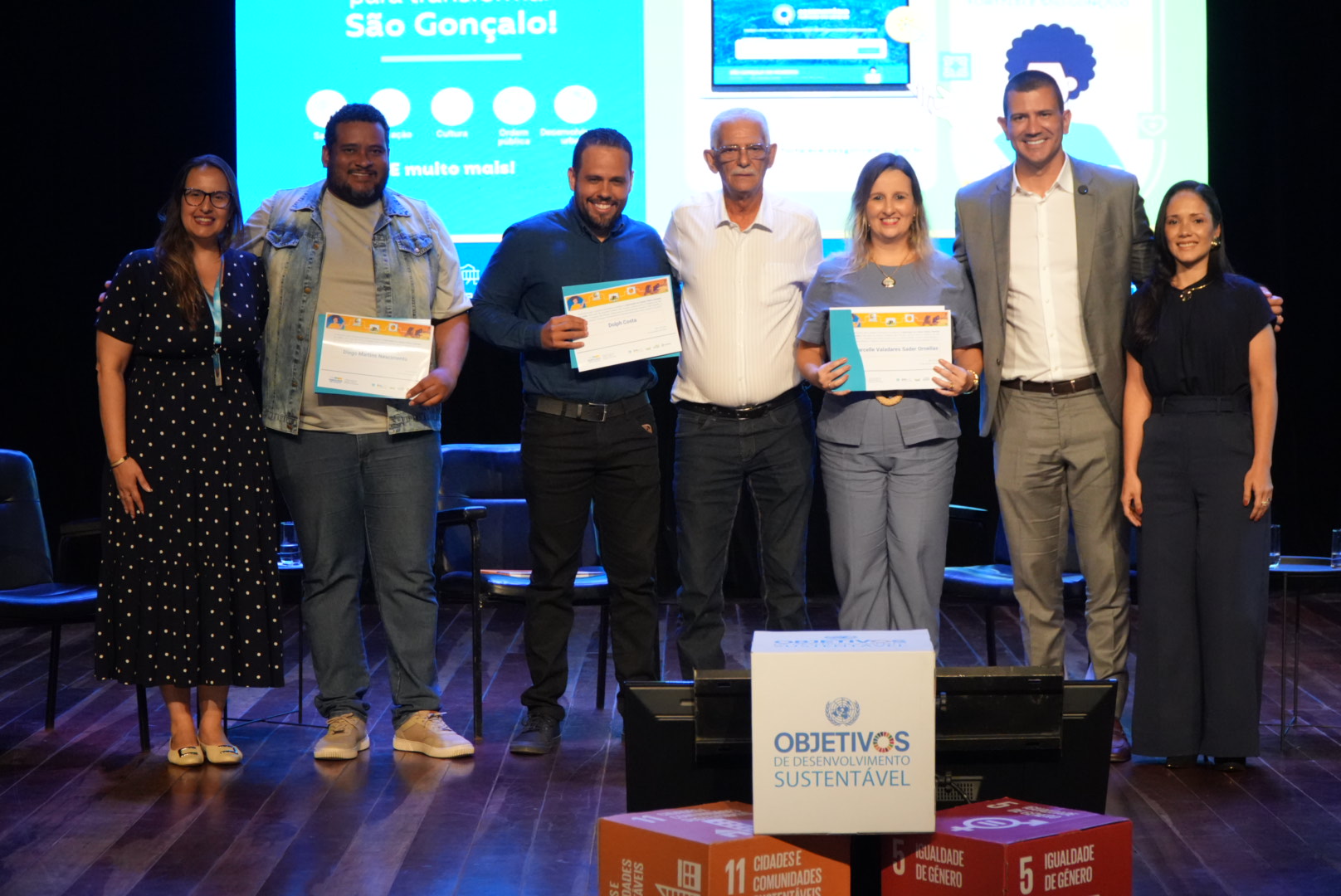 Durante o lançamento do Observatório, também foram distribuídos os certificados de conclusão da Capacitação em Gestão Pública baseada em Dados, um programa do Fortalece São Gonçalo, que capacitou mais de 40 servidoras e servidores da cidade no uso de dados para planejar políticas públicas mais eficazes.