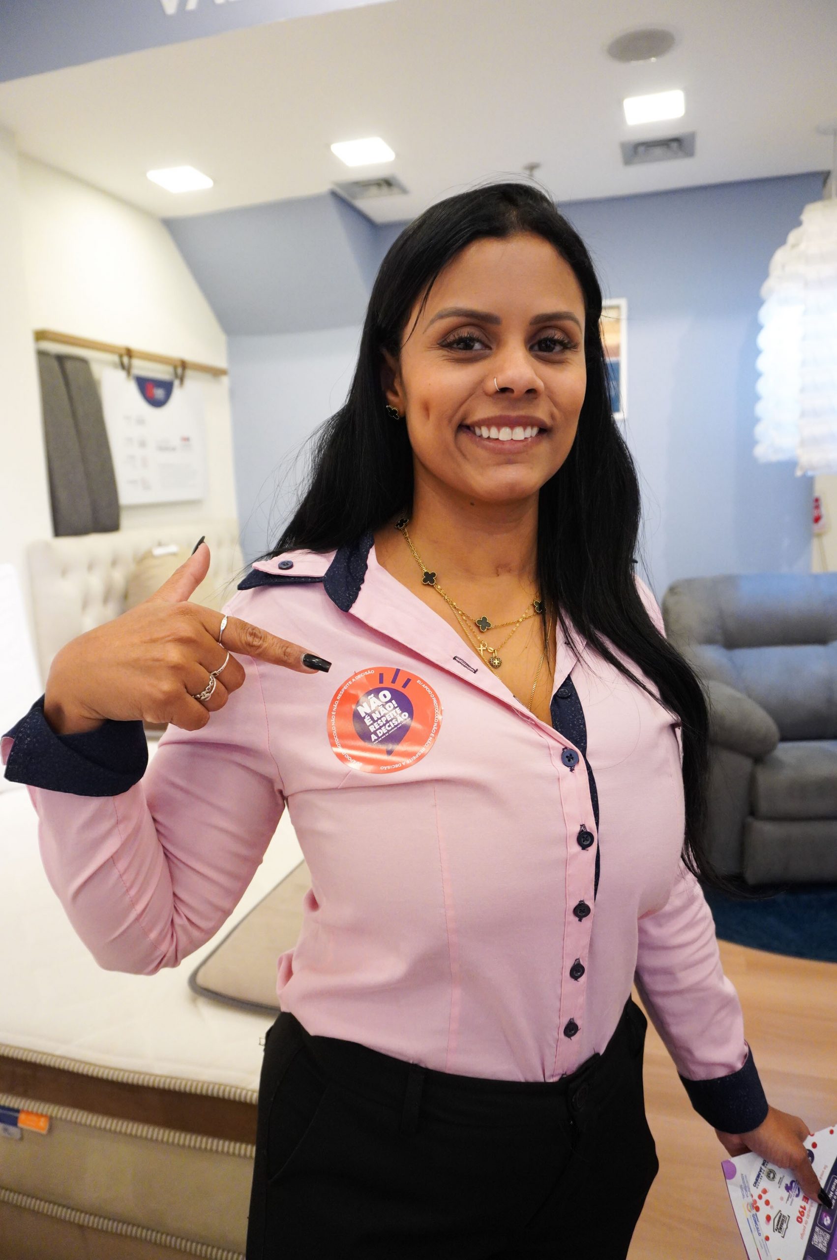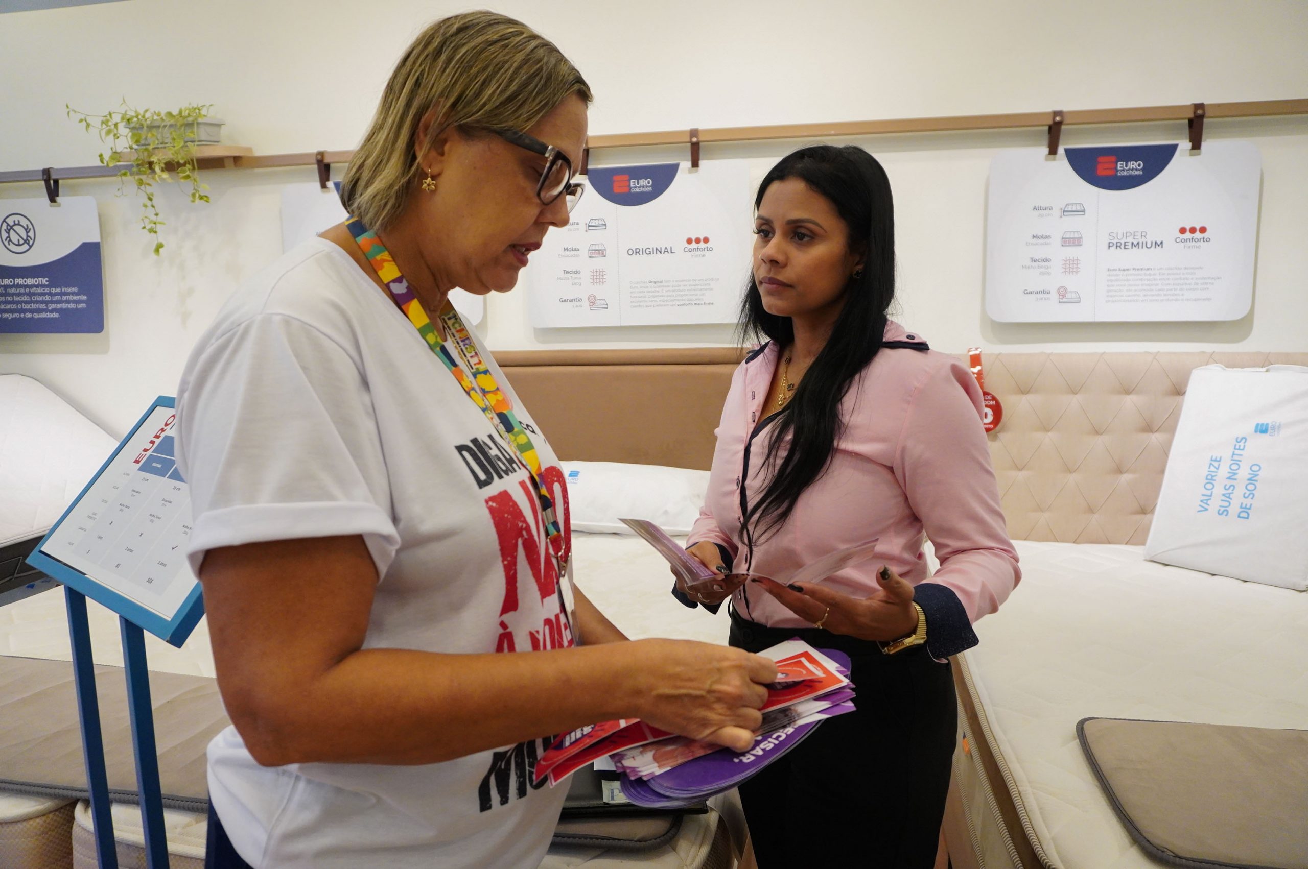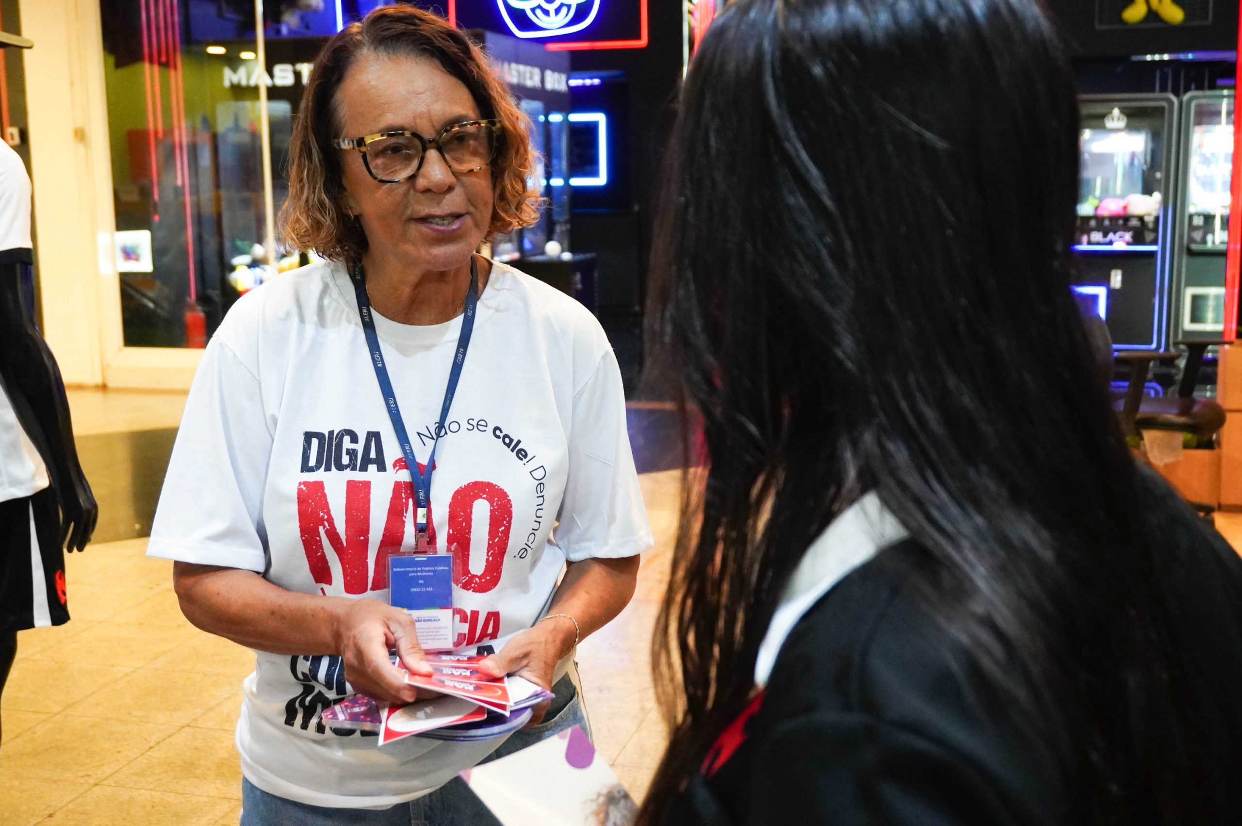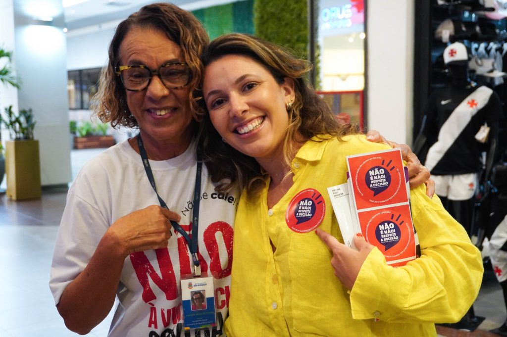 Com lugar fixo no shopping, ao lado do Restaurante Outback, as servidoras vão esclarecer dúvidas e também divulgar os serviços da subsecretaria e da rede de apoio. Elas também vão passar o dia entregando panfletos informativos e adesivos com a frase “Não é Não” aos lojistas. A vendedora Evelyn da Silva Costa, de 34 anos, elogiou a iniciativa.