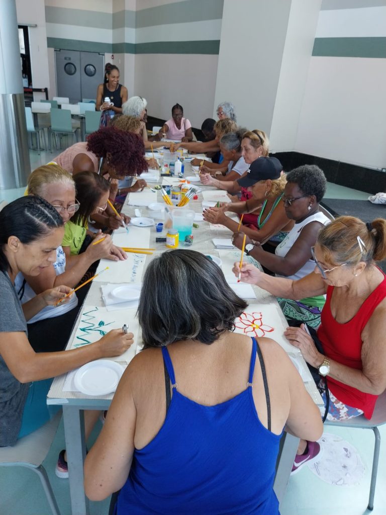A oficina, que teve apoio do Pátio Alcântara, contou com a participação das mulheres da ginástica do projeto Mulheres que Fazem e Acontecem e do público do shopping.