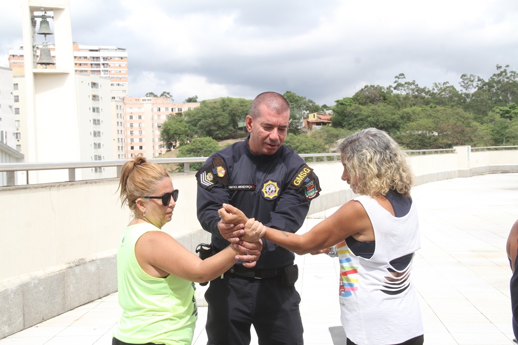Fabiana Portugal, de 40 anos, que está no curso de formação da Guarda Municipal, ensinou movimentos de defesa pessoal para a mulheres durante o evento. Ela treina karatê desde os 13 anos e é faixa preta no esporte. Segundo Fabiana, ensinar para outras mulheres é sempre importante.