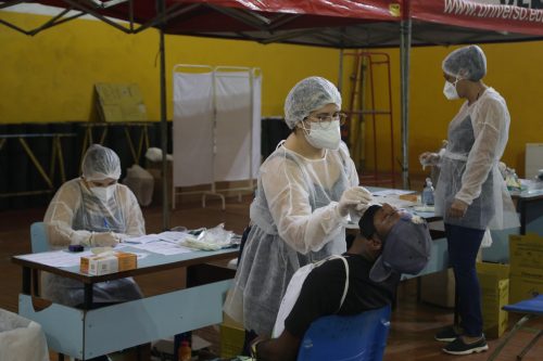 A enfermeira Rayane Santos, de 23 anos, que faz parte da equipe de testagem na Universo, disse que a maioria das pessoas está indo fazer o teste alegando que teve contato com alguém que está contaminado.