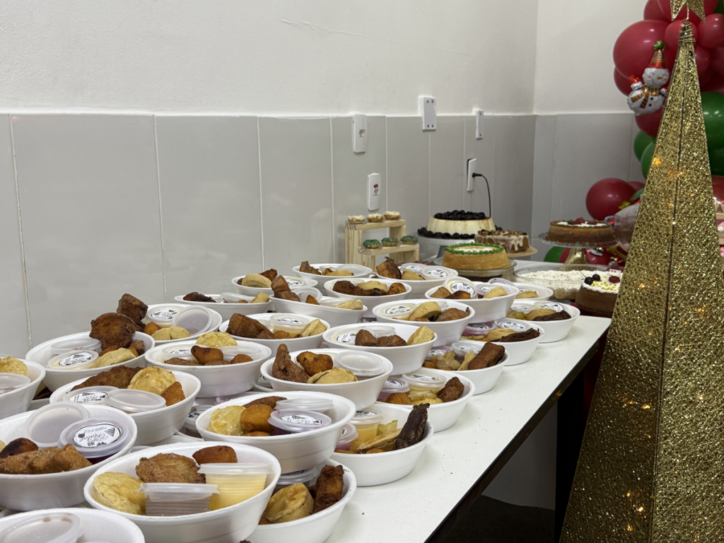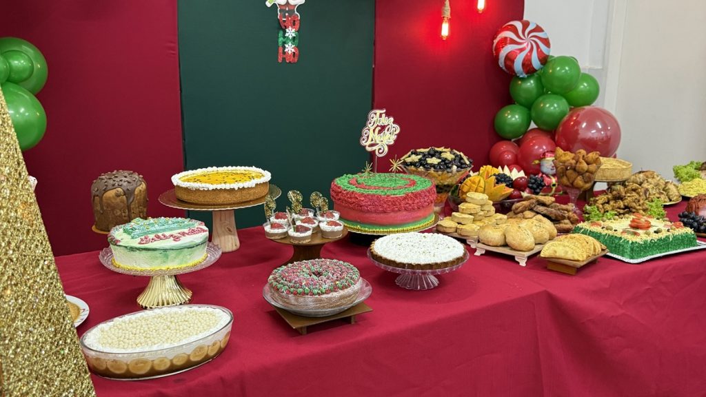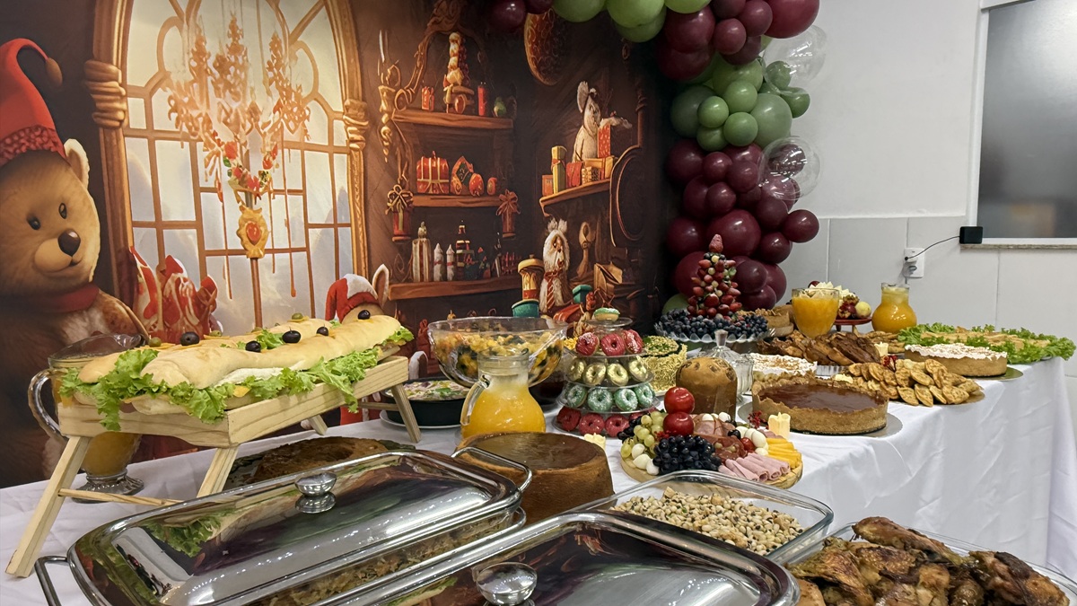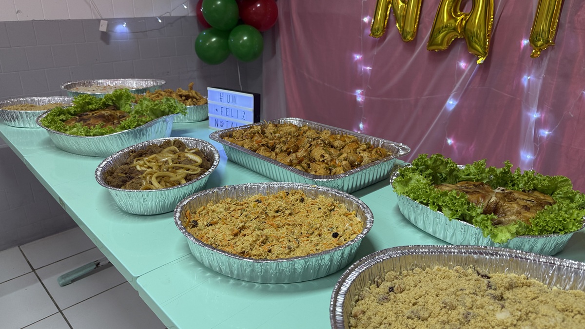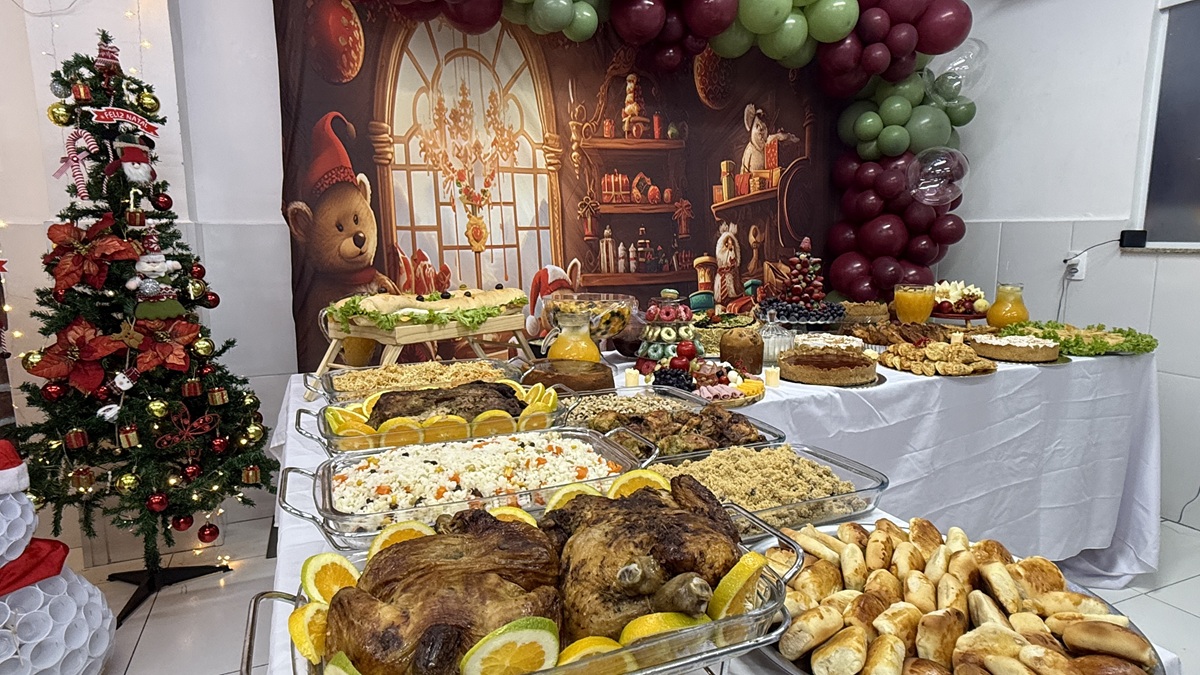 No cardápio, não faltaram itens como aves, farofa e sobremesas