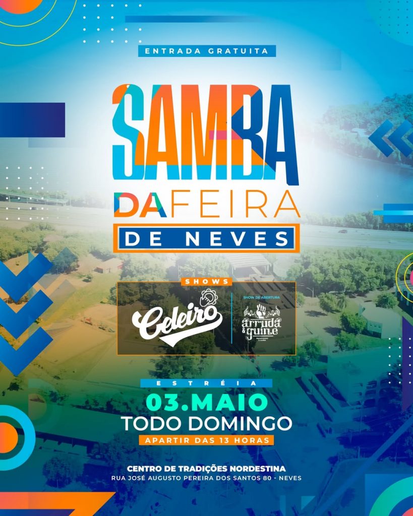 Dias 3, 10, 17, 24 e 31: O “Samba da Feira de Neves” acontece todos os domingos, com entrada gratuita, conforto e segurança. Diversas atrações do pagode e do samba se apresentam a partir das 13h. Além da música, o público poderá almoçar ou petiscar com a família na praça gastronômica do evento.