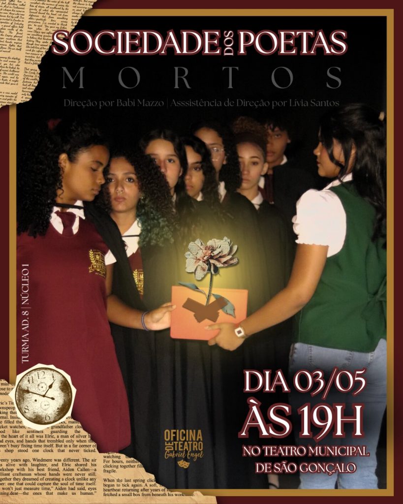 Dia 3: A peça “Sociedade dos Poetas Mortos” é uma adaptação do clássico, agora numa versão feminina. A professora Joana Keating chega a uma tradicional escola preparatória de meninas, conhecida por seu alto padrão e rigor. Com métodos pouco ortodoxos, ela inspira suas alunas a enfrentarem as pressões familiares e escolares, incentivando-as a perder a timidez, seguir seus sonhos e aproveitar o dia.