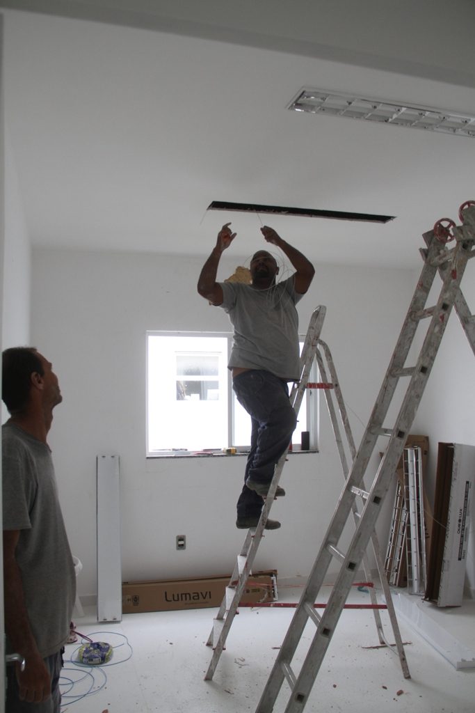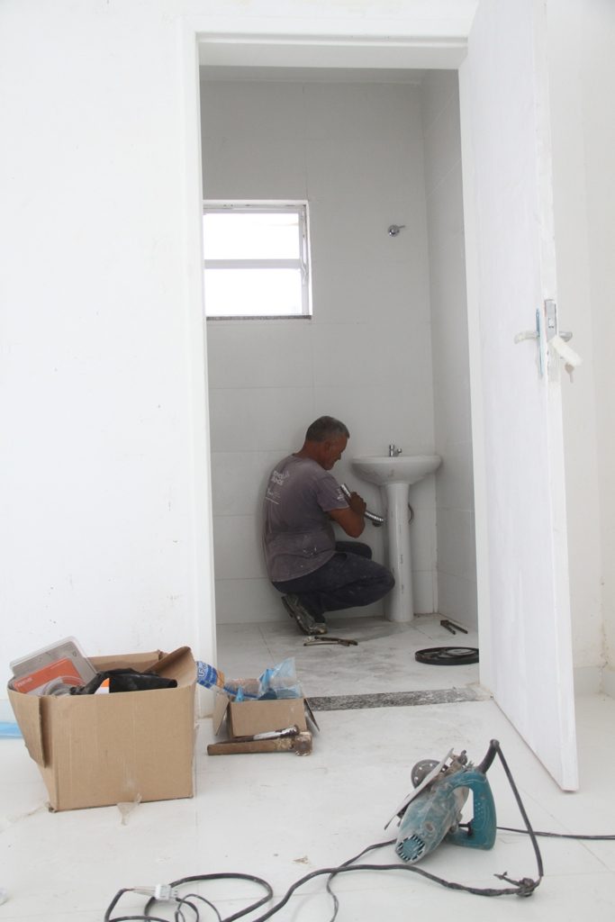 Instalação de luminárias e das louças sanitárias (lavatório e vaso), finalização da pintura e emboço externo das muretas. Essas são as atividades que estão em andamento atualmente na unidade. Após a finalização, faltarão apenas pequenos detalhes relacionados à obra. A segunda fase antes da inauguração é a administrativa, com a entrada de mobiliário, instalação de equipamentos e organização de fluxo de trabalho.