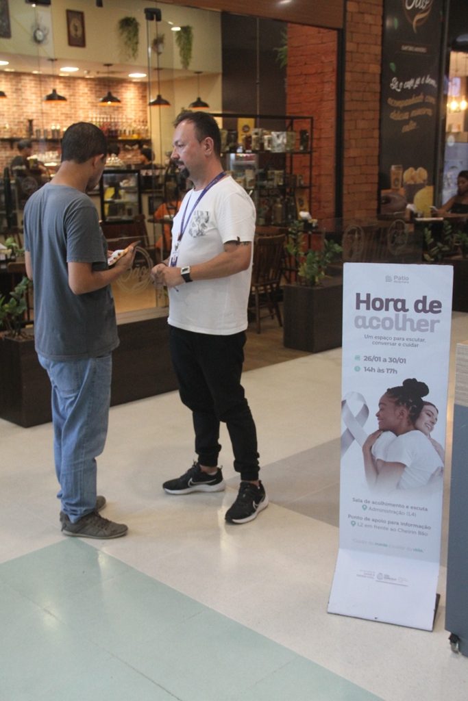 Mesmo enfrentando resistência devido à falta de conhecimento da população sobre a importância e os cuidados que devem ser tomados em relação à saúde mental, os profissionais estão no comércio repassando as informações. O acolhimento – chamado de escuta acolhedora – é realizado em local reservado do empreendimento.