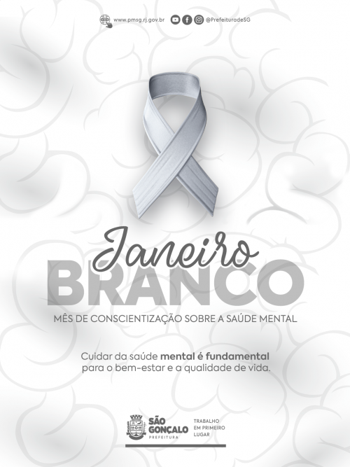 A campanha Janeiro Branco é dedicada à conscientização sobre a importância e os cuidados necessários com a saúde mental e emocional, visando a prevenção das doenças psíquicas em toda a população, como estresse, ansiedade, depressão e pânico. As atividades de prevenção e cuidado têm como tema “Paz . Equilíbrio . Saúde Mental” e incentivam a discussão sobre o tema, dando ênfase ao tratamento e apoio oferecidos nos equipamentos de saúde da cidade.