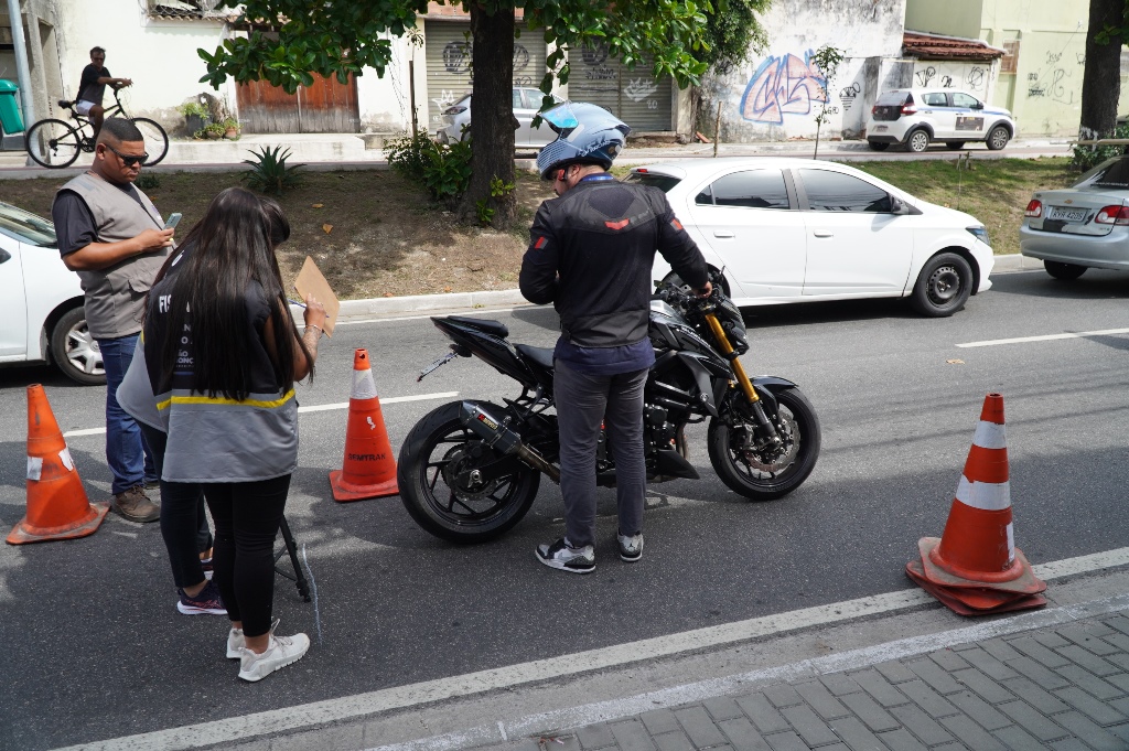 Durante as ações, são realizados testes com decibelímetro, um equipamento capaz de verificar se os escapamentos das motos estão dentro dos padrões permitidos por lei.