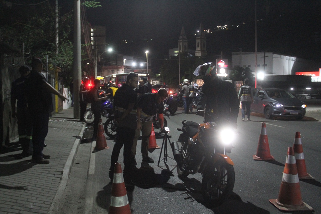 Durante a operação, os agentes realizam testes com um decibelímetro para verificar se os escapamentos das motos estão dentro dos padrões permitidos por lei.